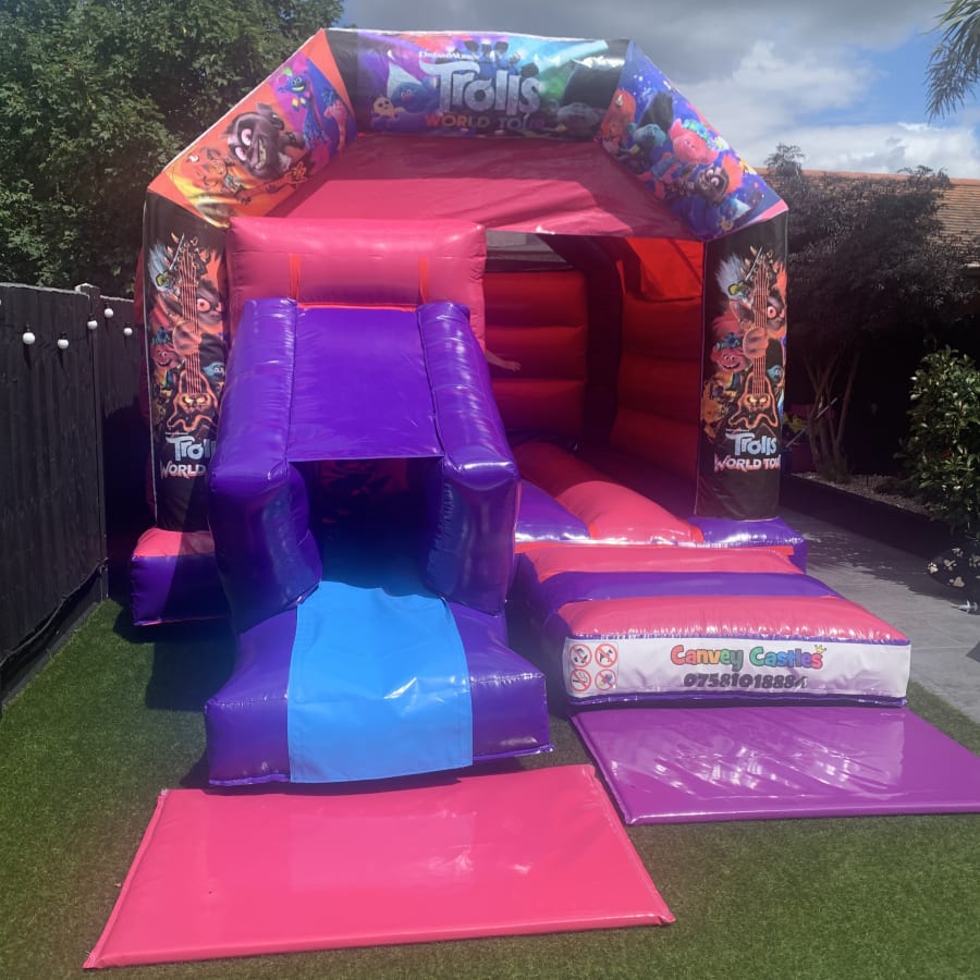 Enjoy hassle-free party planning with our reliable party rentals Essex service. We offer prompt delivery and setup of the 12ft x 17ft Pink and Purple Trolls World Tour Slide Combo Bouncy Castle in Essex, making it easy for you to host a successful event. Our team ensures everything is in place, so you can focus on creating joyful memories with your little ones.