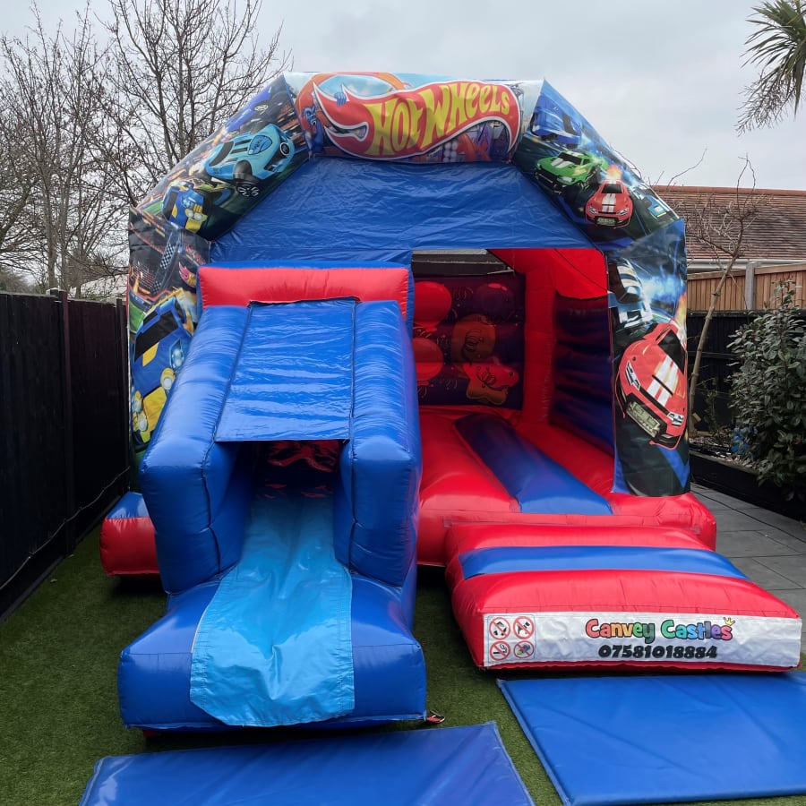 Are you ready to turbocharge your next event with the ultimate in inflatable excitement? Look no further than our extraordinary 12ft x 17ft Blue and Red Hot Wheels Slide Combo Bouncy Castle. This vibrant and thrilling bouncy castle is a must-have attraction for any party or event in Essex. Designed to captivate the imaginations of children and provide endless entertainment, this inflatable is the perfect choice for your next celebration.