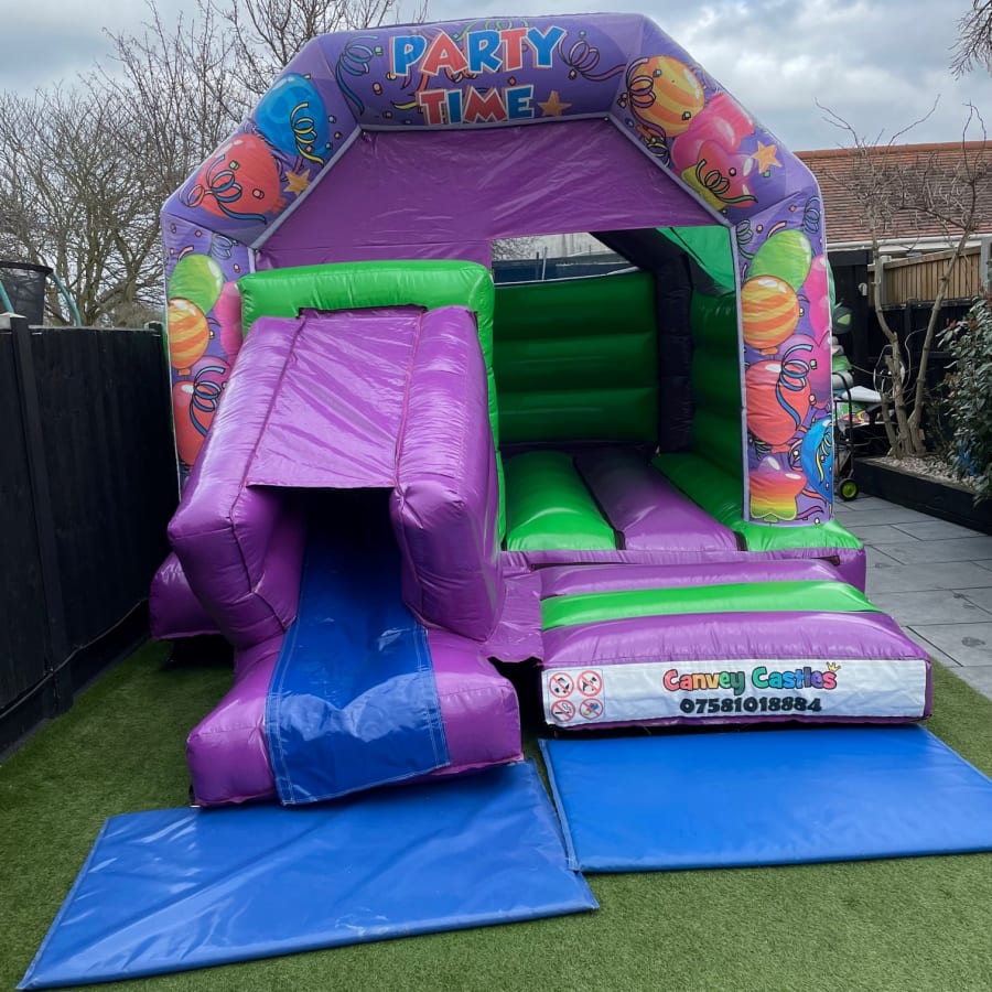 Party Rentals Essex: 12ft x 17ft Green and Purple Party Time Slide Combo Bouncy Castle in Essex