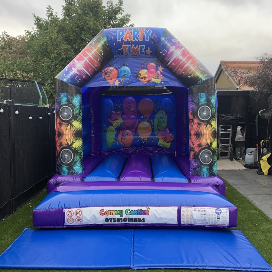10ft x 12ft Blue and Purple Disco Bouncy Castle for Unforgettable Parties in Chelmsford, Southend, Brentwood, and Essex