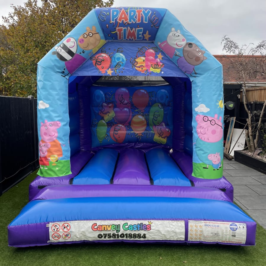 10ft x 12ft Blue and Purple Peppa Pig Design 2 Bouncy Castle for Your Party Rentals in Chelmsford, Southend, Brentwood, and Essex