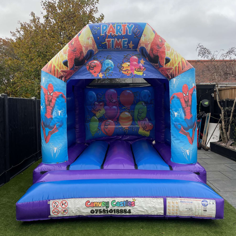 10ft x 12ft Blue and Purple Spider-Man Bouncy Castle in Essex