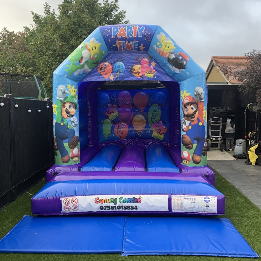 10ft x 12ft Blue and Purple Super Mario Bouncy Castle in Essex