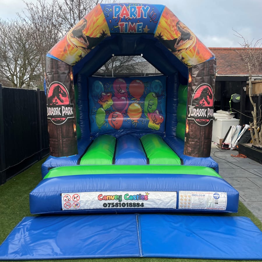 Don't miss out on the opportunity to elevate your party experience in Essex. Book our 10ft x 12ft Green and Blue Jurassic Park Bouncy Castle today for a roaring good time!