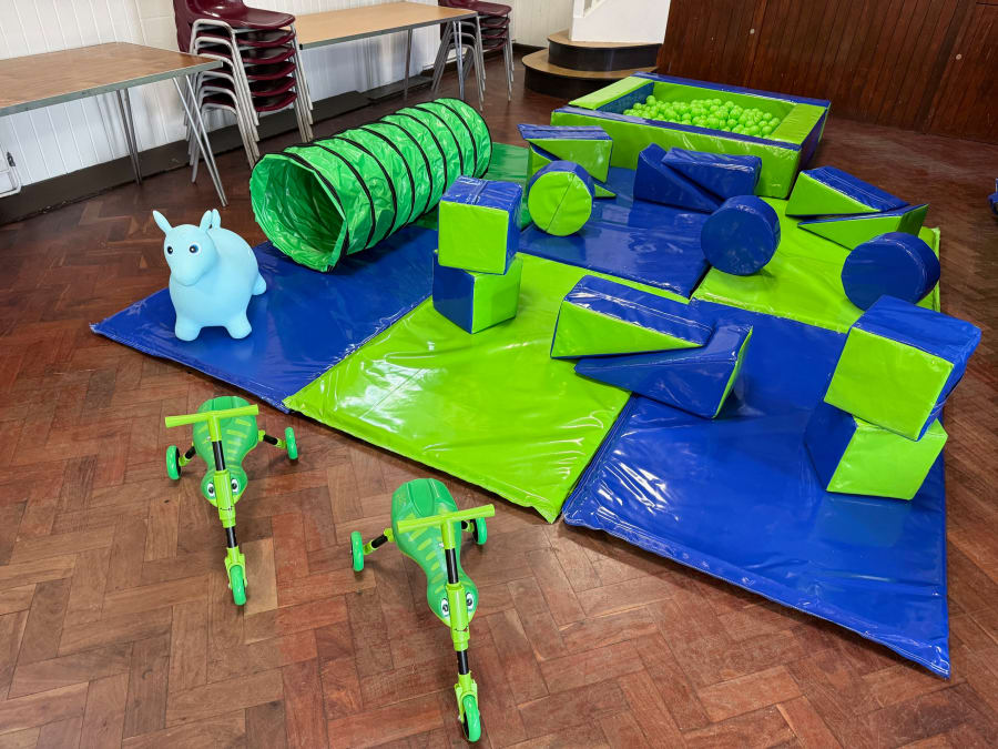 Create a safe, colourful play zone with the Blue and Green Softplay Set. This compact softplay package is ideal for toddler parties, nursery sessions, and family events. The set includes soft, wipe-clean shapes, a 4ft ball pit and playful ride-ons to keep little ones engaged. Perfect for party rentals, this set is designed for easy setup and safe, supervised fun.