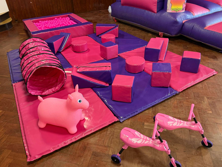 Party Rentals Essex Pink and Purple Soft Play and Bouncy Castle Package in essex delivers bright, safe fun for toddlers and young children. This package combines a 12ft x 12ft pink and purple bouncy castle with soft play elements. It's ideal for birthday parties, community events, and family gatherings across essex.